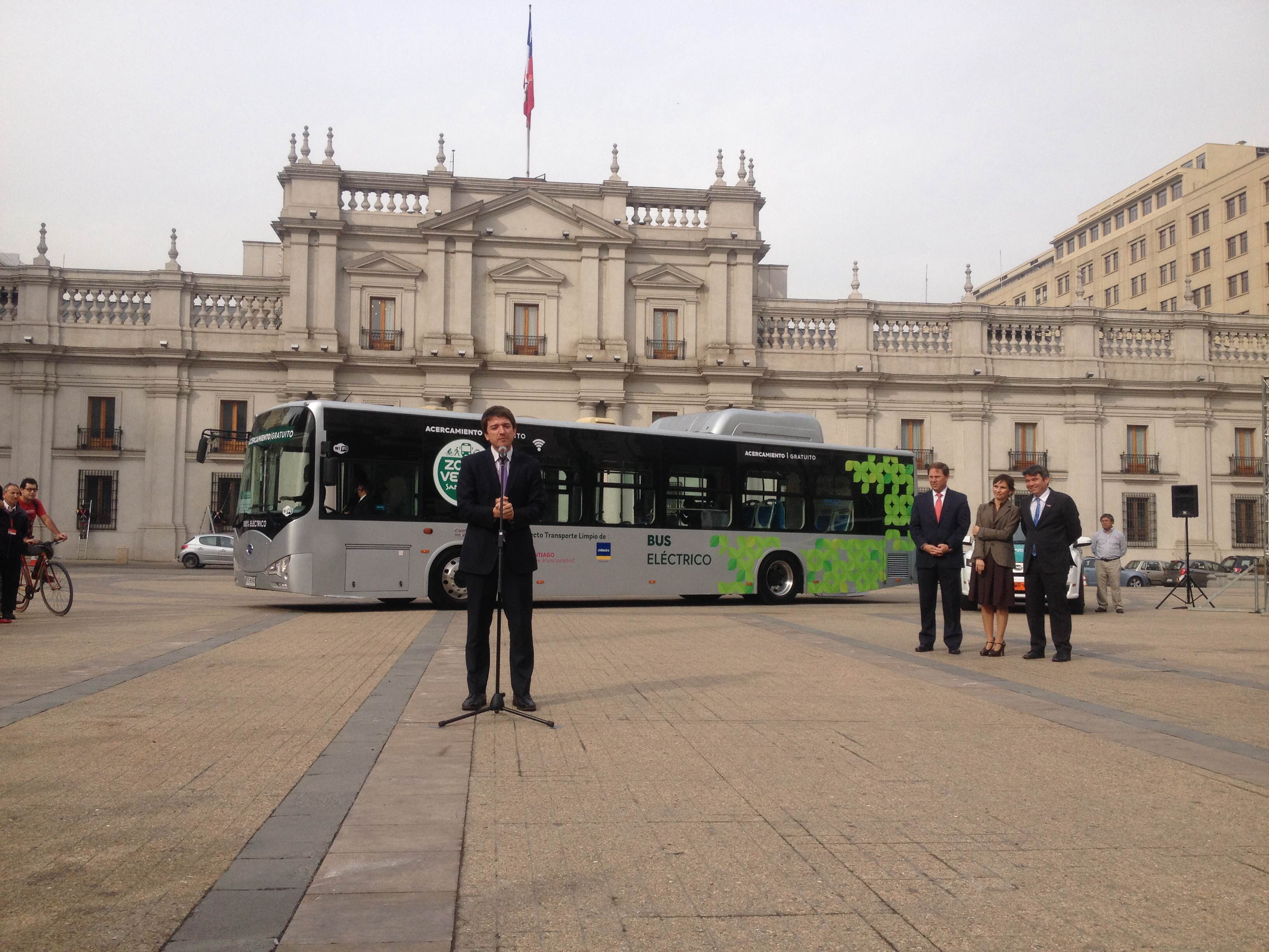 Autoridades inauguran primer bus eléctrico del país que operará de forma gratuita en el centro de Santiago